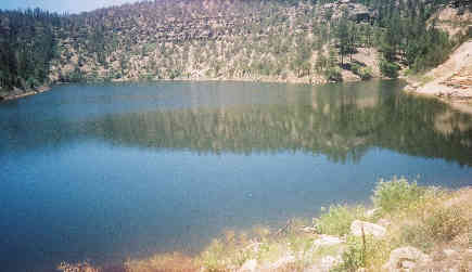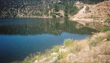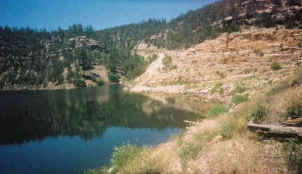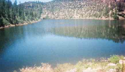| There is a paved road to the camping area. The camping area has a picnic table and restroom. There is a dirt & rock road down to the lake, about a 1/2 mile down from the camping area it is closed to motor vehicles and you have to walk down the mountain about a mile to the lake. |