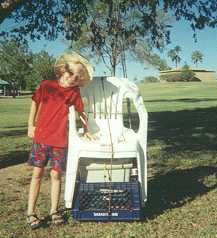 We made a little carry all to put our fishing gear in, it's made of an old plastic hand truck with an old milk crate tied to it. We can carry our fishing rods, ice chest, chairs and etc. in it. |